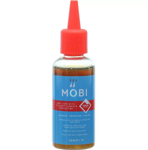 The Mobi Dry Lube with Teflon is formulated to penetrate your inner  chain and drivetrain. It effectively prevents the build-up of dirt, grit and  dust associated with dry weather riding while ensuring smooth shifting and  pedalling performance.