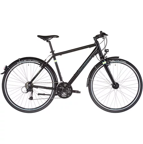 The intuitively operable Shimano Acera 21-speed derailleur system as well as reliable V-brake brakes on the front and rear wheels fit in perfectly. The Serious Cedar Hybrid rolls quickly and comfortably on slightly profiled Schwalbe CX Comp tyres and with this equipment is just as well prepared for everyday use on paved roads as for pleasure tours or fast laps over country lanes and the like.